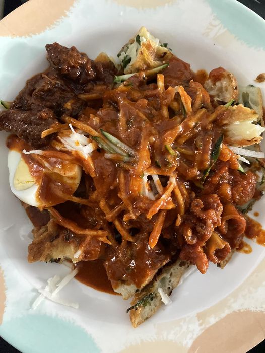 Pasembur is a Malaysian salad consisting has deep-fried fritters, julienned vegetables and a thick, rich orange-coloured spicy sauce.